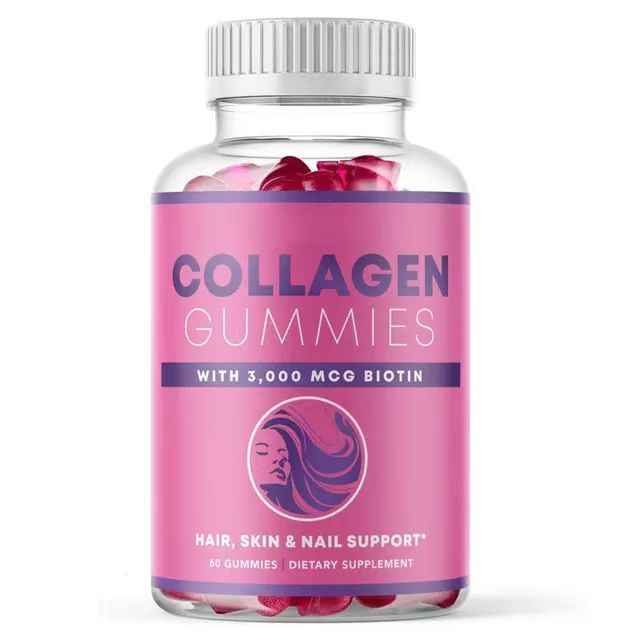 Gummies de Collagène pour Adultes Marque Privée OEM/ODM Beauté 2 Gummies par Jour 60 Gummies par Bouteille Saveur Personnalisée Durée de Conservation 24 Mois