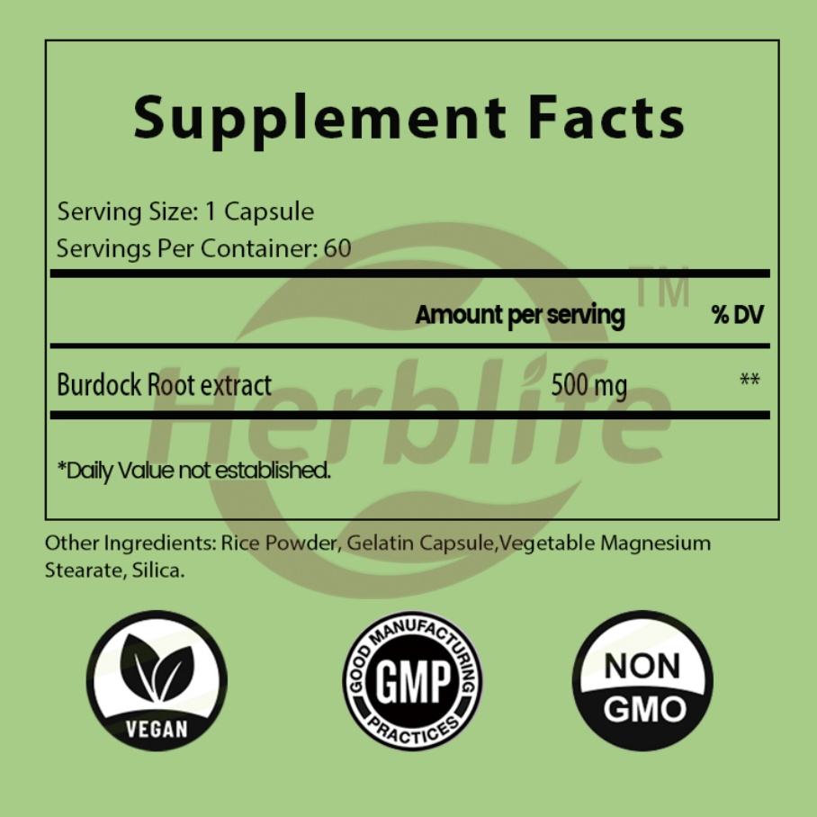 OEM ODM Private Label Burdock Root Capsules 500mg - Herbal Supplement for Liver & Skin Health, Digestion, Immunity Support,Vegan