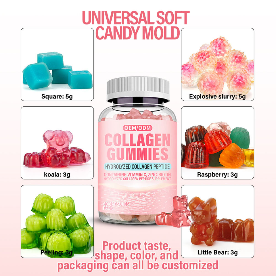 Gummies de collagène multi-vitaminées à marque privée OEM/ODM pour la beauté des cheveux, de la peau et des ongles, soutien anti-rides pour adultes