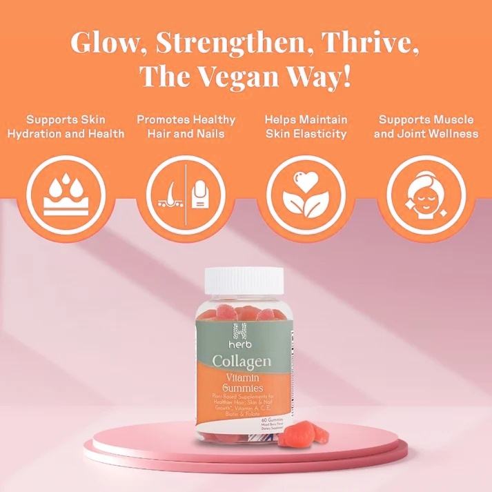 Gummies de collagène multi-vitamines à marque privée OEM/ODM pour la beauté des cheveux, de la peau et des ongles, soutien anti-rides pour adultes