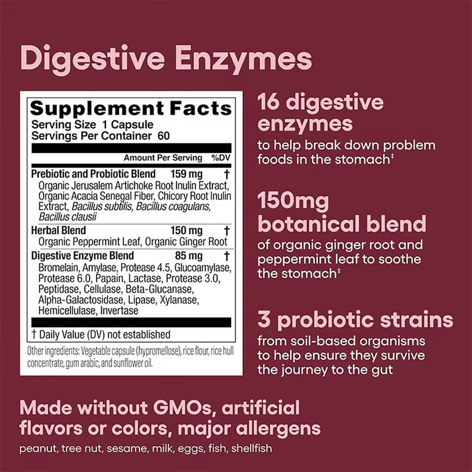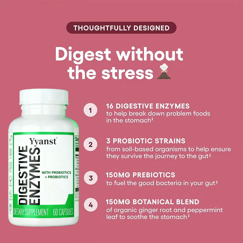 Capsules d'enzymes digestives à marque privée OEM/ODM avec prébiotiques et probiotiques favorisant l'absorption et soutenant la digestion