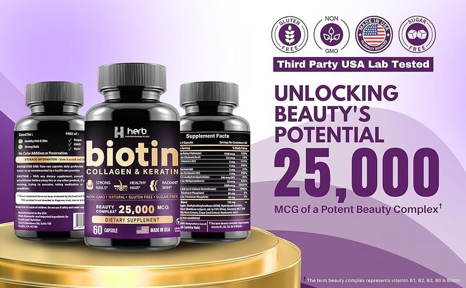 Capsules de biotine pour adultes à absorption rapide avec collagène, kératine et vitamines, pour le soutien des cheveux, des ongles et de la peau, marque privée OEM/ODM