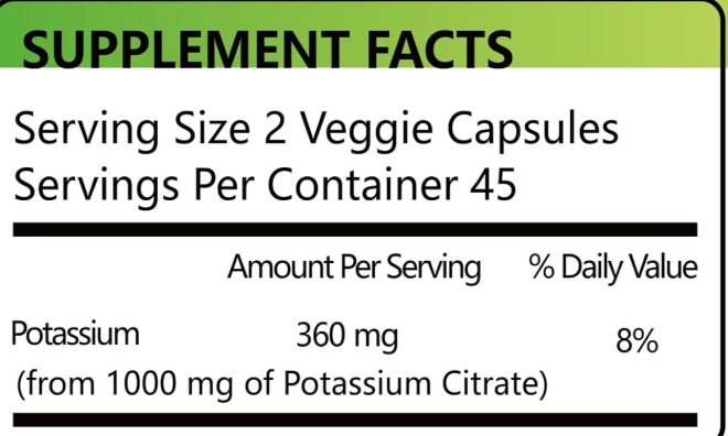 Ingrédient principal:Capsules de citrate de potassium
