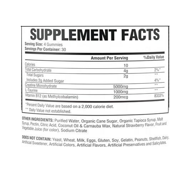Complément alimentaire en gommes énergétiques à la créatine monohydrate pour la croissance musculaire, marque privée OEM/ODM, pour femmes enceintes, 120 unités