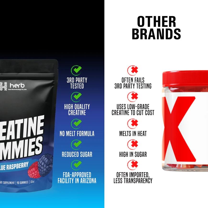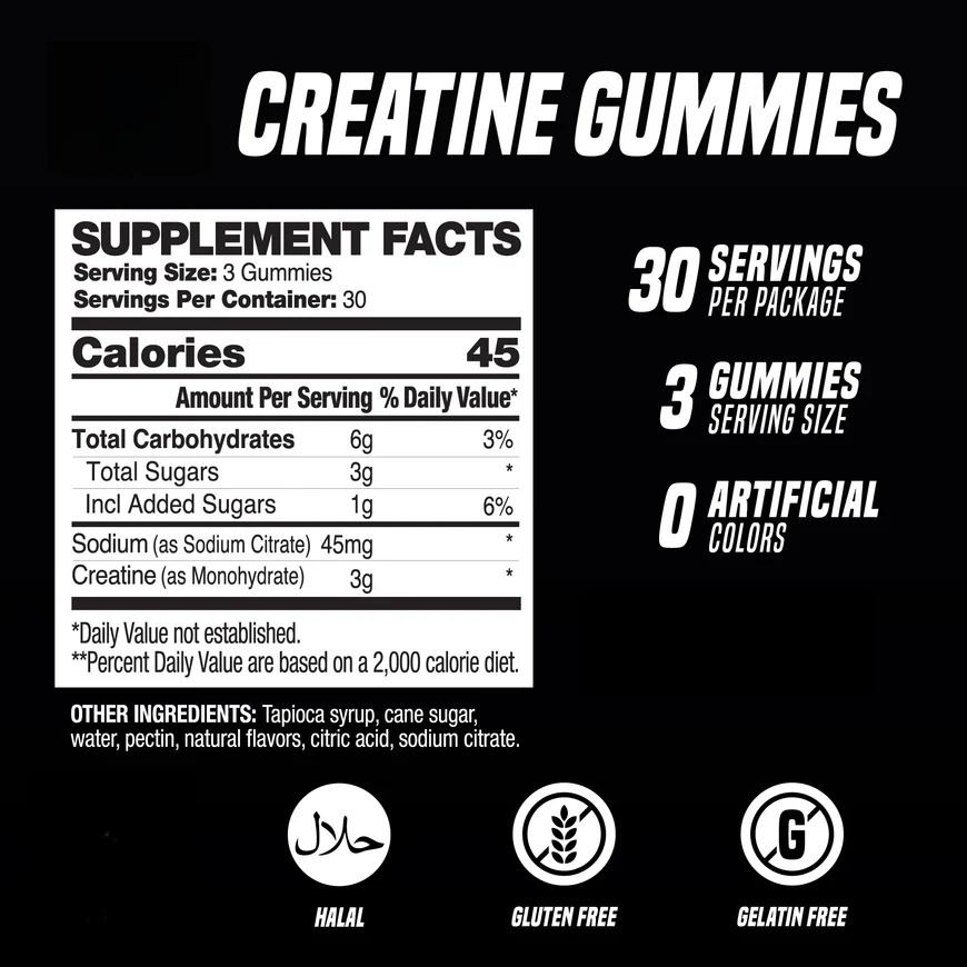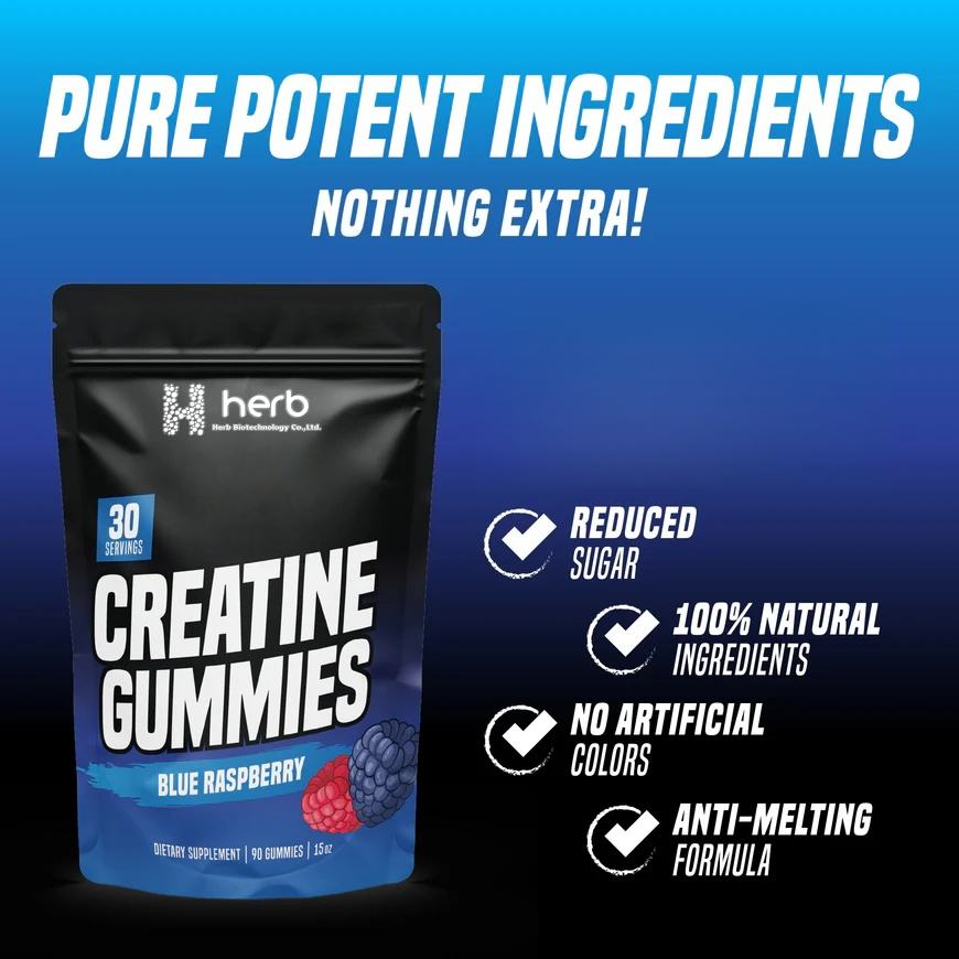 Complément pré-entraînement en marque privée OEM/ODM, bonbons énergétiques, gommes à la créatine monohydrate pour la croissance musculaire des adultes
