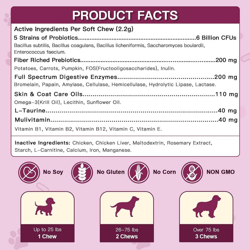 Probiotiques pour chiens OEM ODM Private Label avec prébiotiques favorisant un microbiome intestinal équilibré - Renforce la santé immunitaire - Friandises à mâcher molles