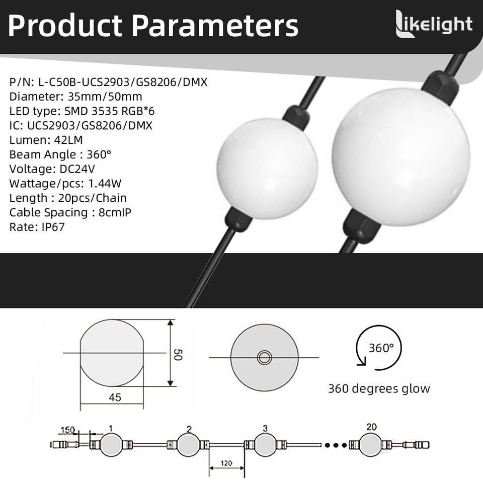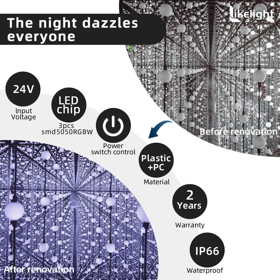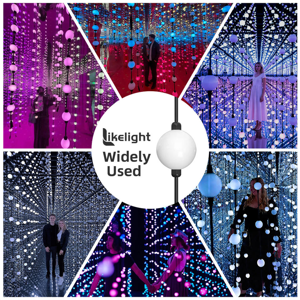 Guirlande lumineuse matricielle 3D programmable OEM ODM 35mm/50mm 24V UCS1903 IP67 LED RGB pour rideau de billes et exposition