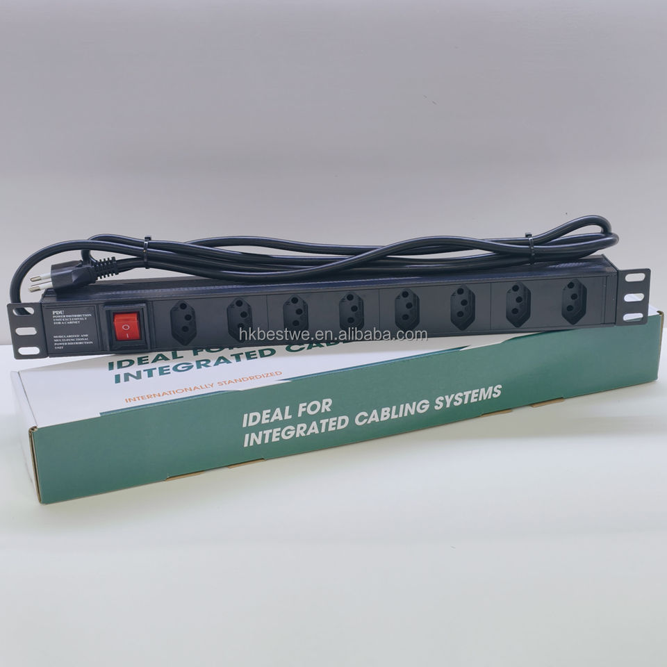 PDU 19 pouces en alliage d'aluminium à 8 prises, standard Brésil, certifié ANATEL, pour montage en rack, OEM/ODM, pour centres de données