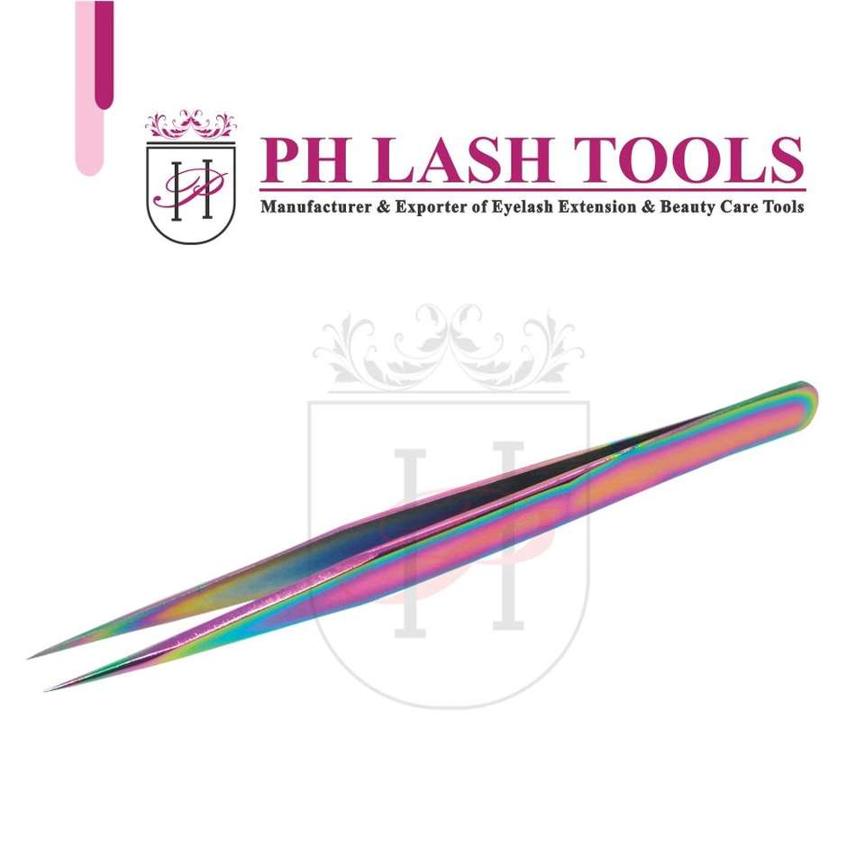 SERVICE OEM ODM BRUCELLES D'EXTENSION DE CILS EN ACIER INOXYDABLE PERSONNALISÉES À ISOLEMENT DROIT COULEUR ARC-EN-CIEL