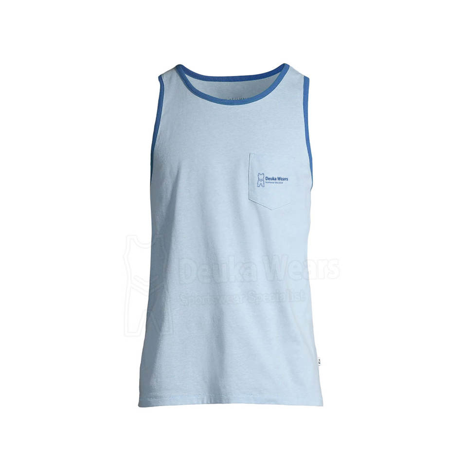 Service OEM/ODM : débardeur sur mesure pour homme avec poche avant, 100 % coton, sans manches, pour l'entraînement estival, col rond.
