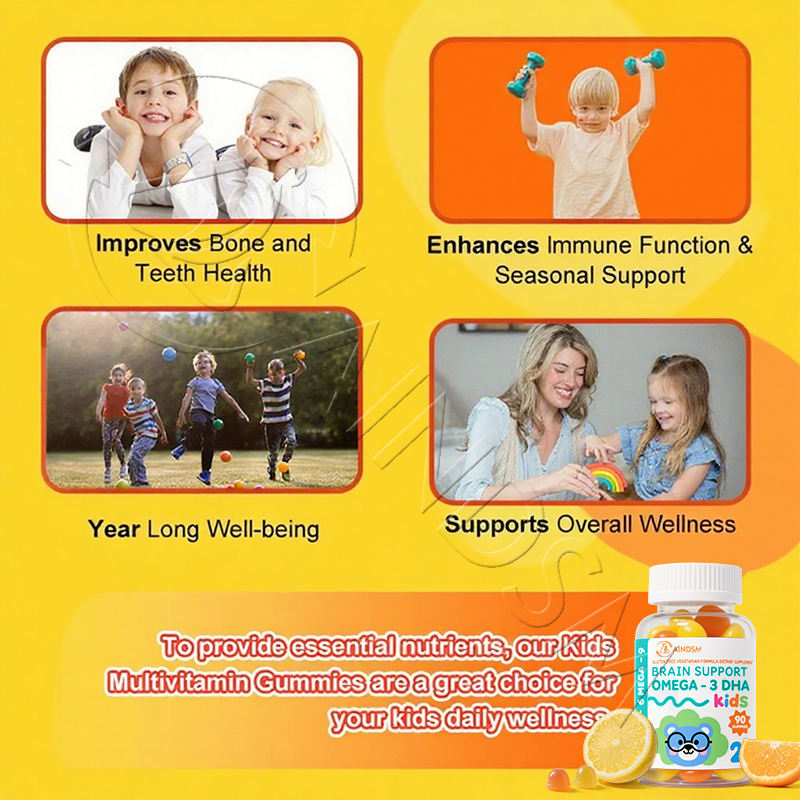 Service OEM/ODM Gommes de soutien immunitaire Oméga 3 pour enfants Gommes oméga à l'huile de poisson pour enfants Gummy Oméga 3 DHA pour la santé des enfants