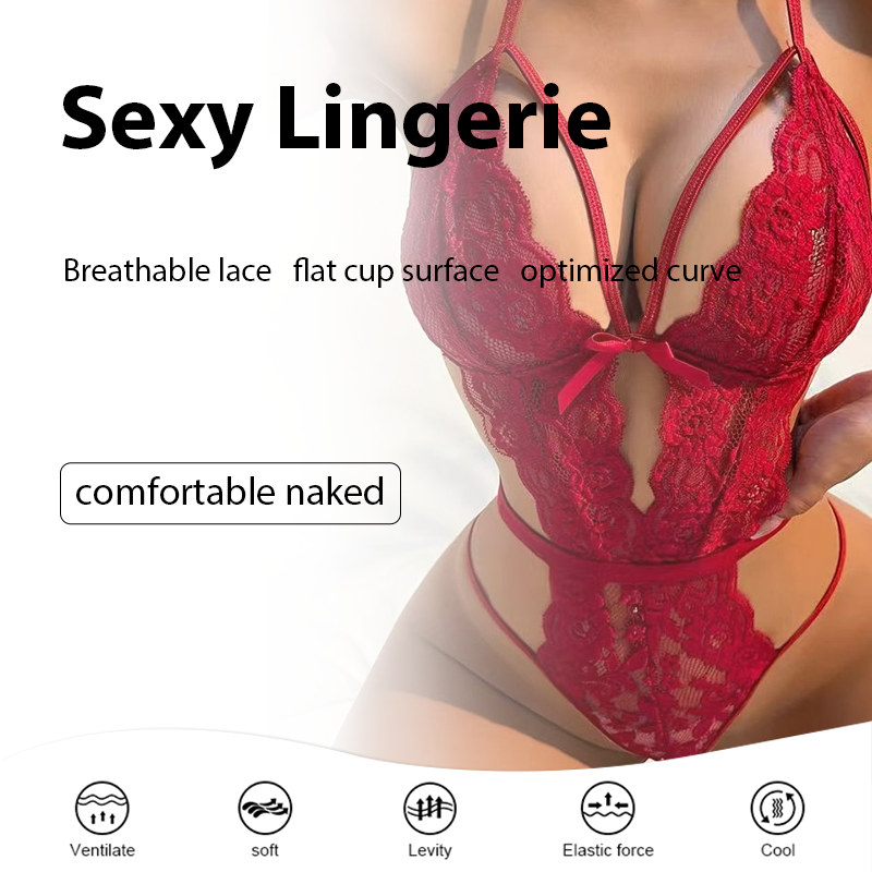 OEM/ODM Ensemble de lingerie en dentelle à broderie française sexy transparente de grande taille Baby Doll Lingerie romantique sexy à gros seins ouverts