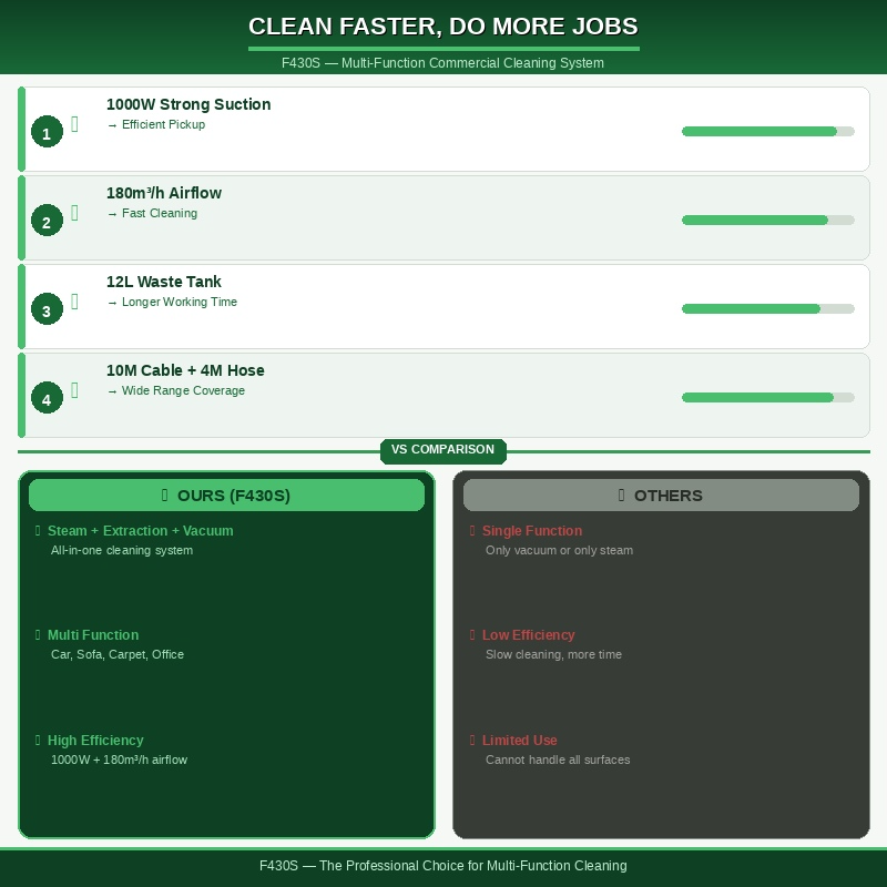 Machine de nettoyage de tapis à vapeur OEM ODM pour entreprise de nettoyage, extracteur multifonction pour tissus d'ameublement, aspirateur F430S