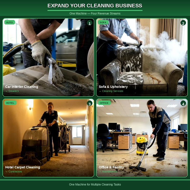 Hotel, Cleaning Service, Car Wash, Office, Facility MaintenanceUtilisation industrielle