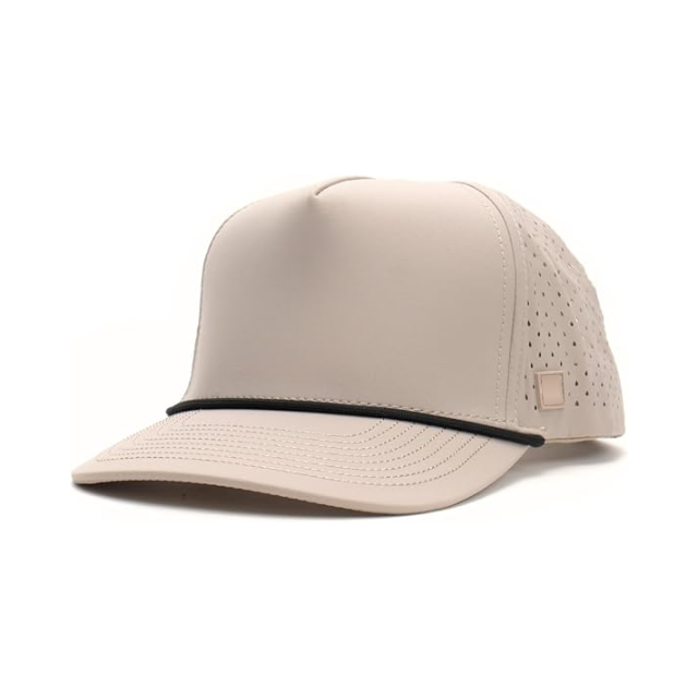 OEM ODM Structuré Solide 5 Panneaux Laser Performance Golf Chapeaux Mi Profil Légèrement Courbé Personnalisé Blanc Corde Caps Perforé Voyage