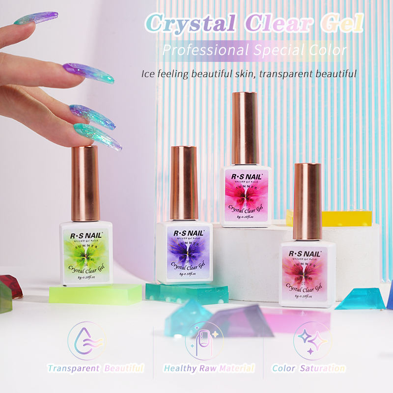 Vernis à ongles en gel transparent de haute qualité R S Nail, 8g, 12 couleurs, sans odeur, tenue 3-4 semaines, garantie 12 mois, compatible OEM/ODM