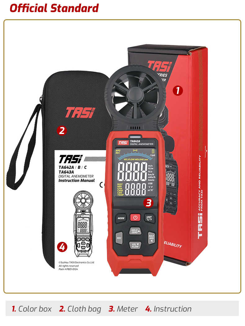 OEM ODM TASI TA642B Anémomètre Connexion USB Anémomètre Température de l'air Débitmètre Numérique