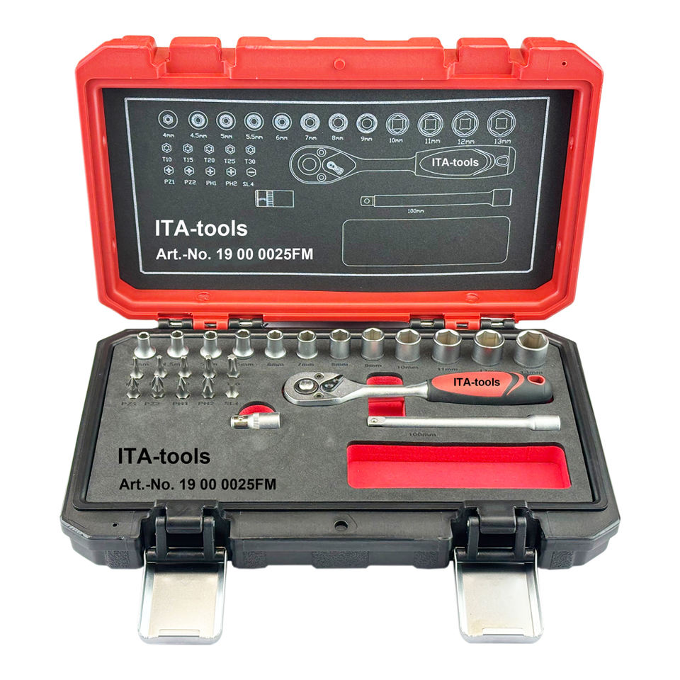 Bit, extension bar, ratchet handle, Socket, Bit Adaptertool includes