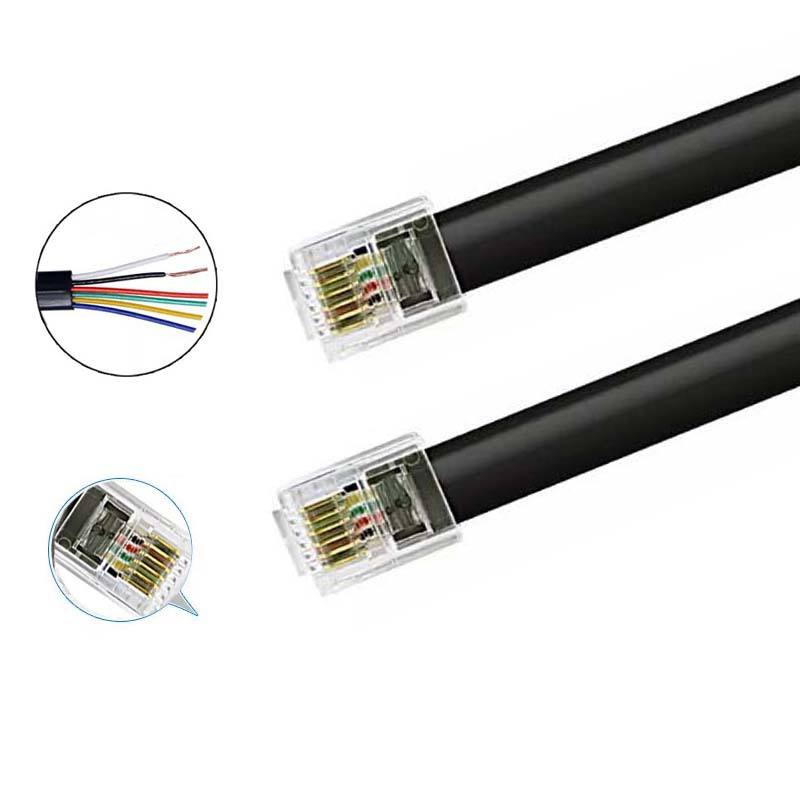 Fabrication de télécom d'OEM/ODM: 2M, 3M, 5M, le téléphone rond noir 6P2C 6P4C RJ11, 6P6C RJ12, 8P8C RJ45 de 10M câble la FX-LPP-6P6C-3M