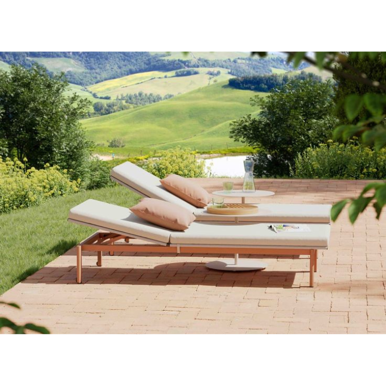Description:Durable sun lounger with adjustable reclining backrest