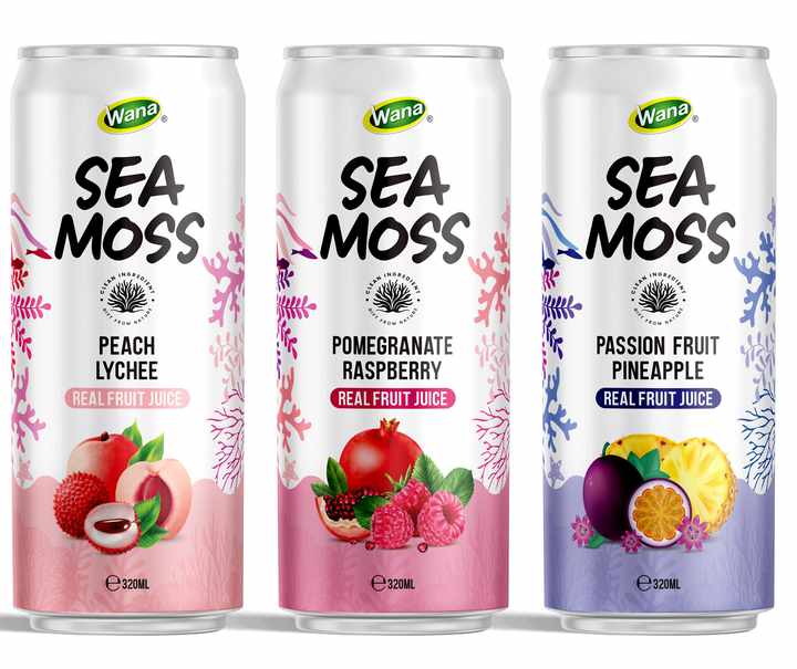 OEM ODM Wana Premium 100% Pure 320ml Tinned Can Flavored Colored Sea Moss Fruity Passion Pineapple Vegetable Juice Ready Drink