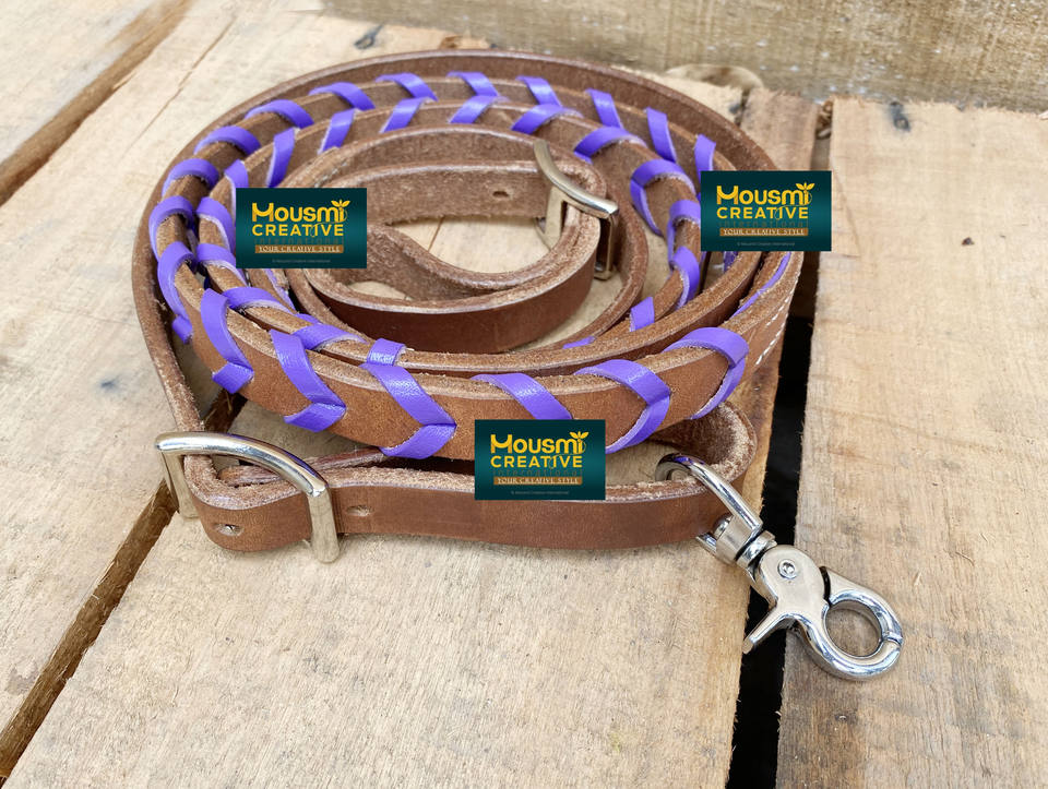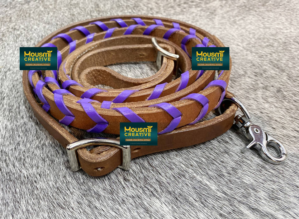 Western Equestrian Horse Leather Rein With Braided Leather Lace FoilProduct Name