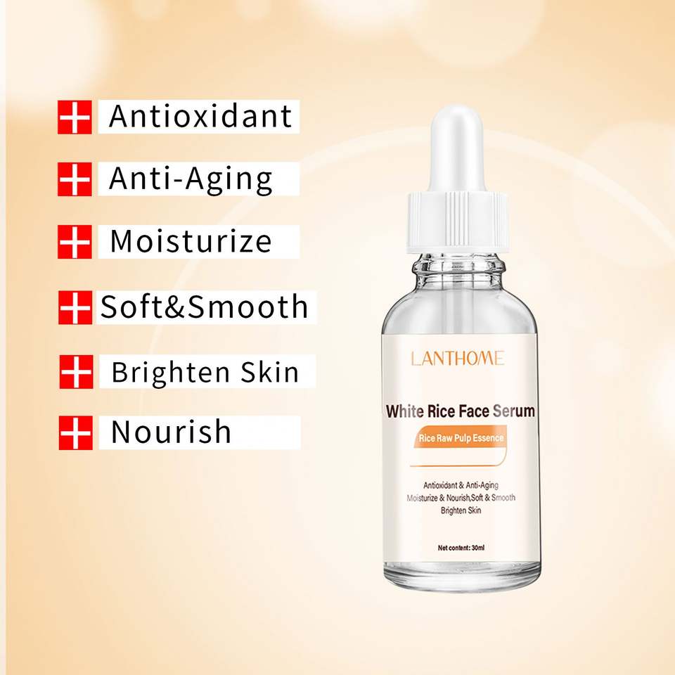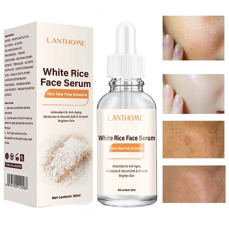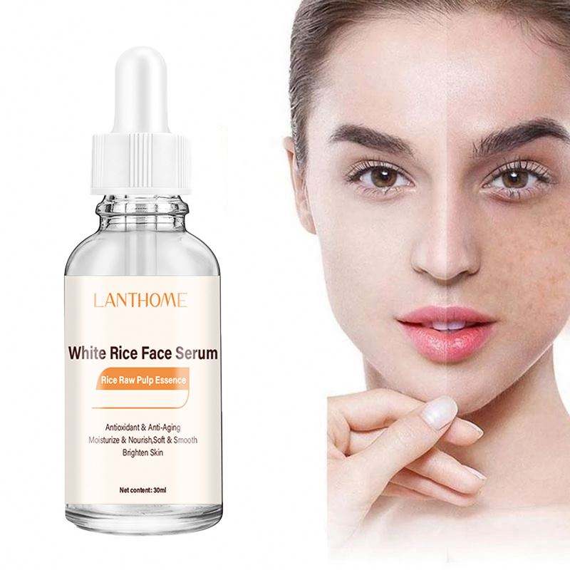 Sérum de visage à l'extrait de riz blanc OEM ODM pour l'élimination antioxydante des taches brunes, liquide de soin du visage hydratant et blanchissant anti-âge