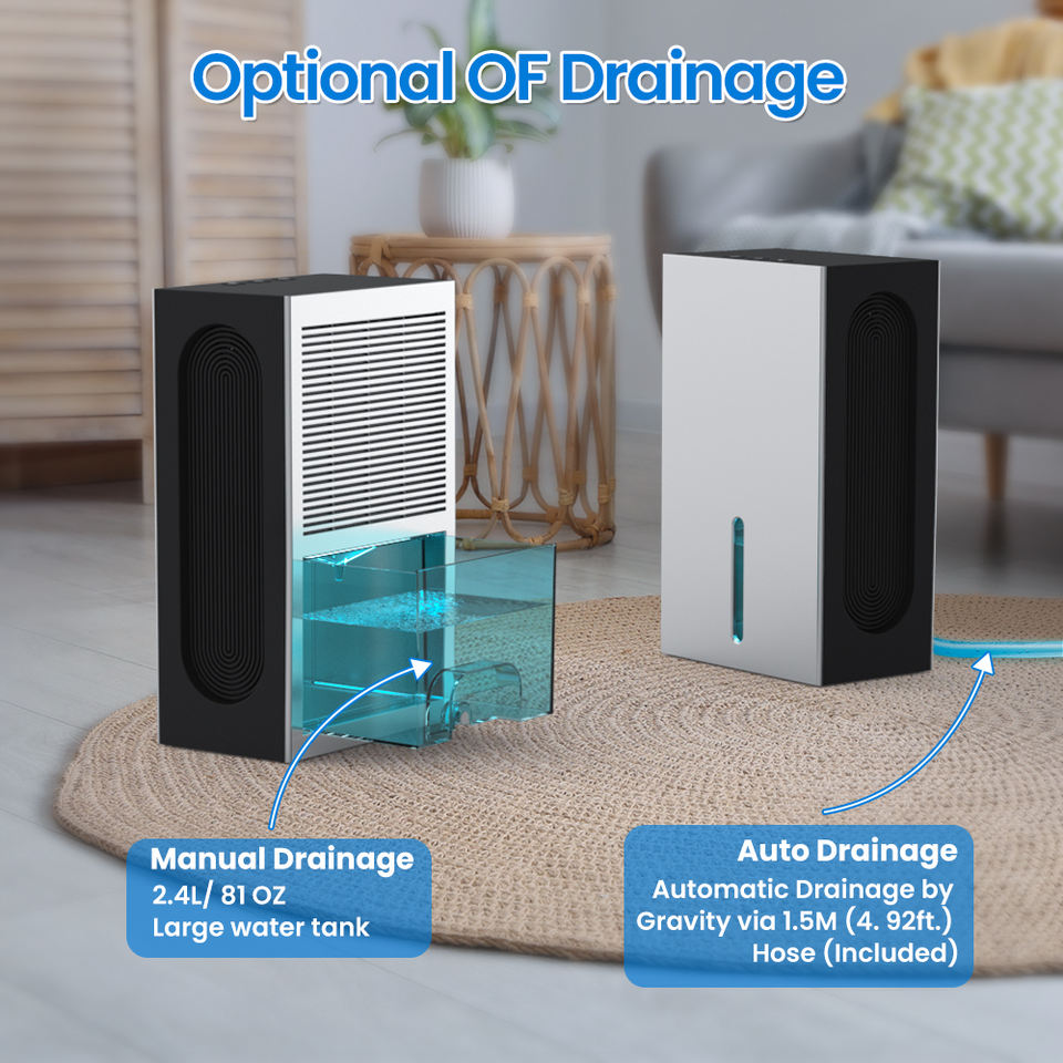 Déshumidificateur Portable Intelligent pour Toute la Maison OEM ODM 2,4 L avec Tuyau de Drainage pour Maison et Sous-sol