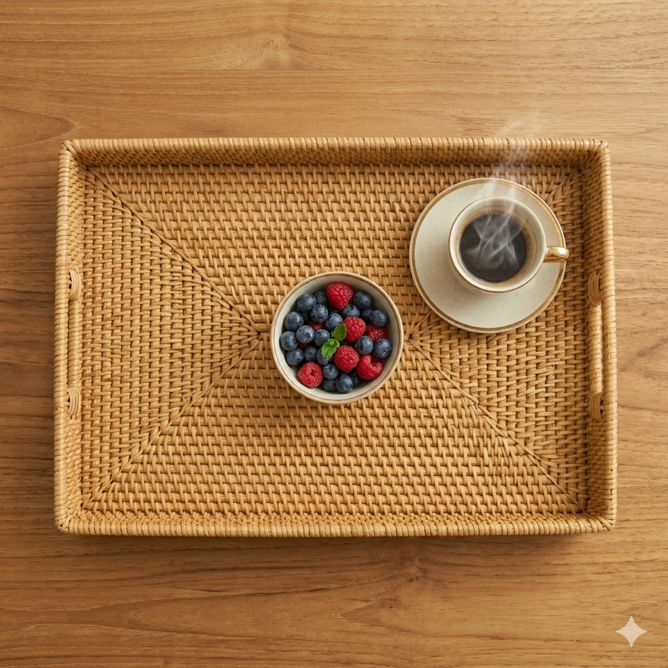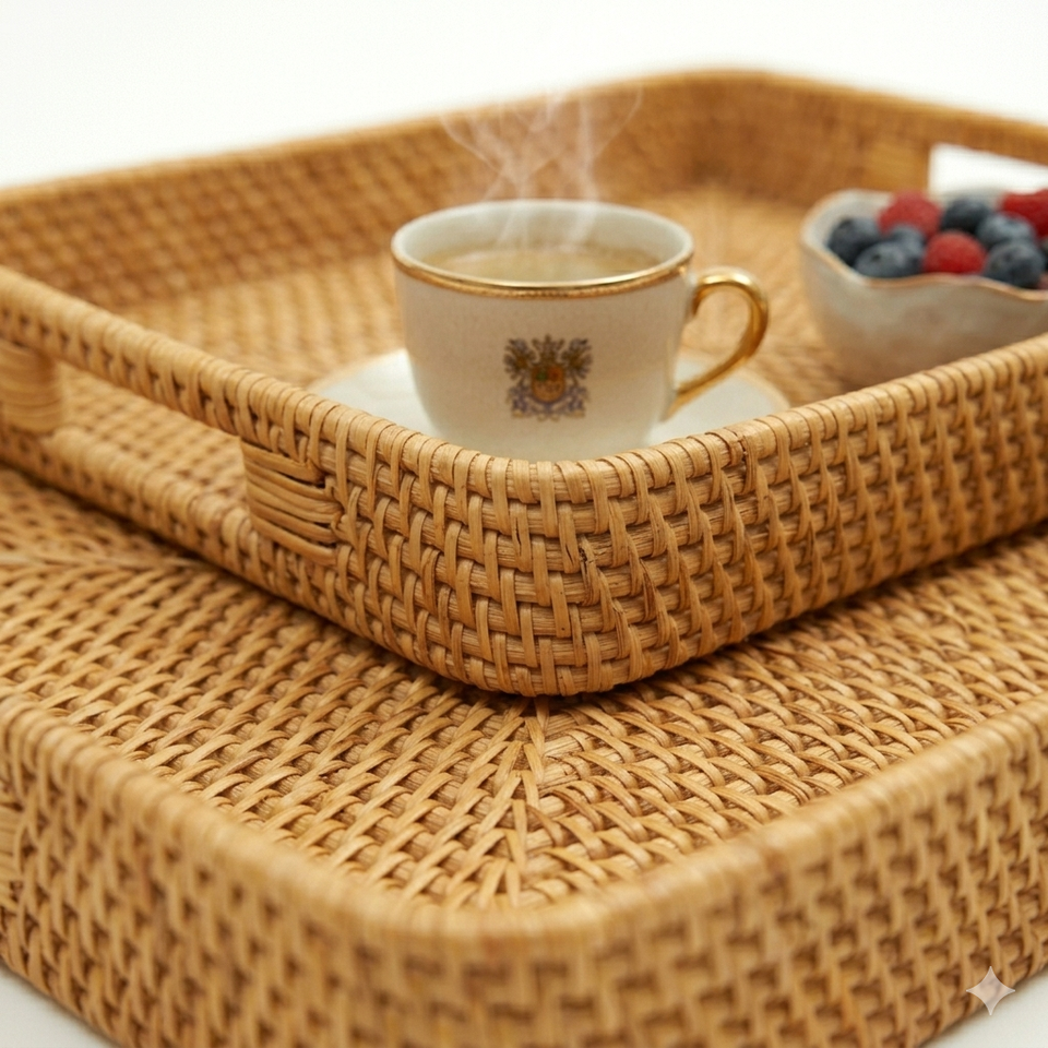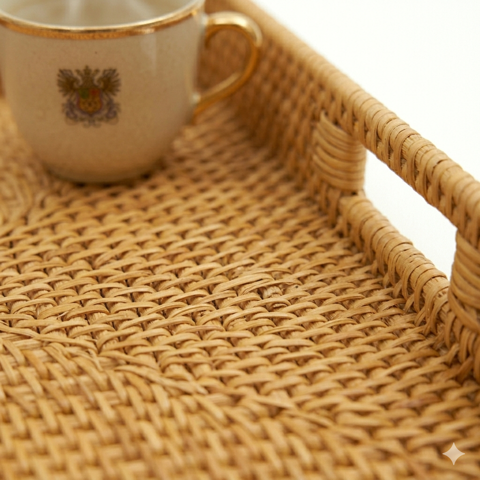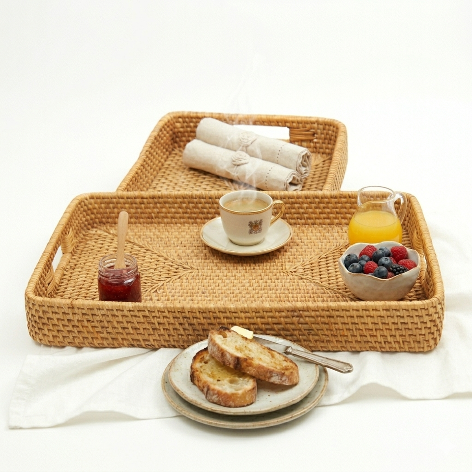 Plateau de service rectangulaire en rotin tressé fait main, design moderne, prix de gros OEM/ODM pour la maison, l'hôtel et le restaurant