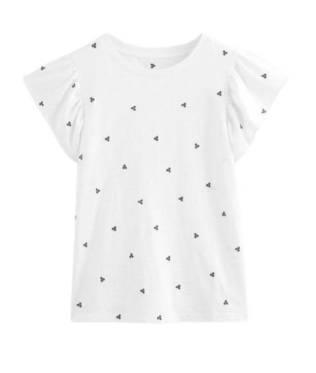 Product name:Embroidered Flutter Sleeve Women T-shirt