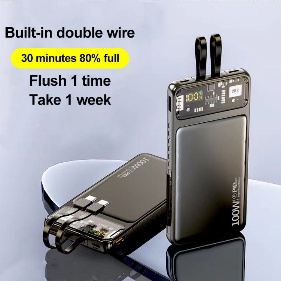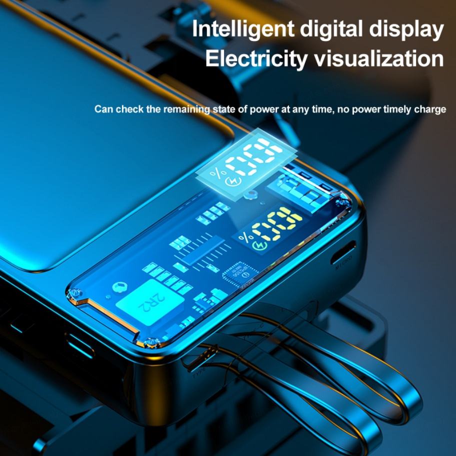 Batterie externe ultra-fine OEM PD22.5W avec câble intégré 3-en-1, charge super rapide, grande capacité 20000mAh 50000mAh