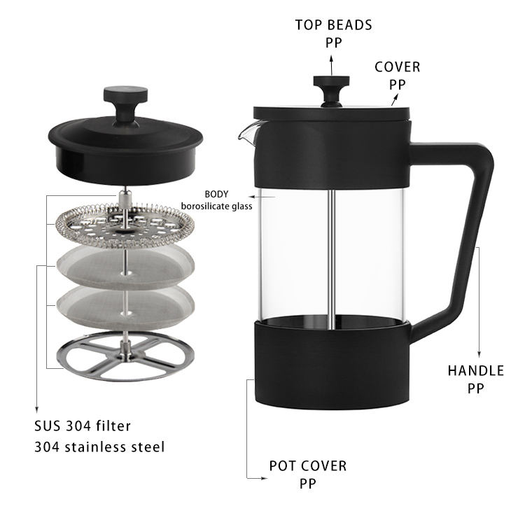 OEM / PDM usage domestique Certification FDA écologique de qualité alimentaire 350 ml conception simple café français presse caf