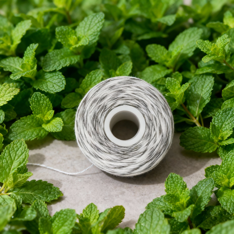 Fil dentaire ciré OEM sans PFAS, à la menthe et au fluorure, pour dents sensibles, résistant à l'usure, avec fibres d'argent