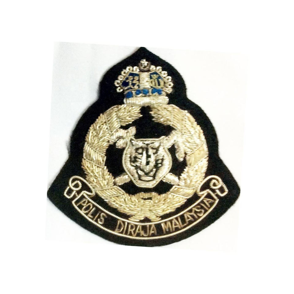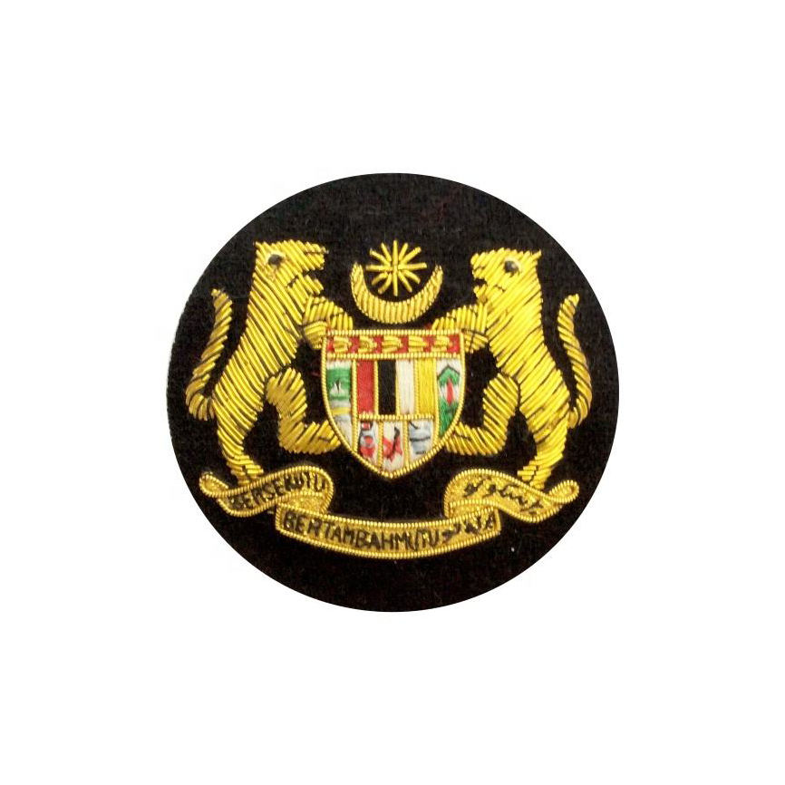 OEM Penjara Malaysia Hand Embroidery Embroidered White Bullion Wire Badge OEM Security Zinc White Patch Sleeve Crest Chest Wing