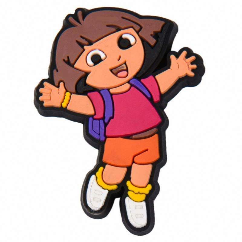 Breloques de chaussures personnalisées OEM, décoration de dessin animé, accessoires de chaussures en PVC, breloques de chaussures Dora