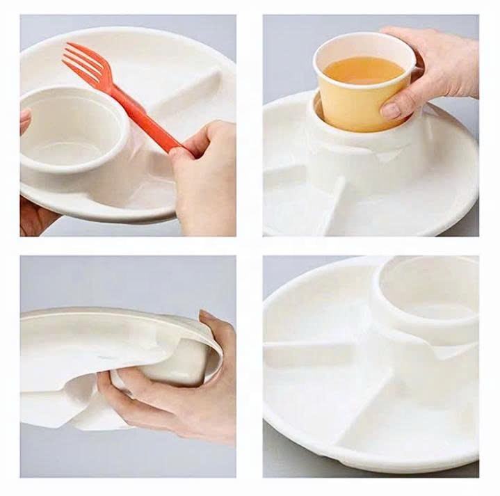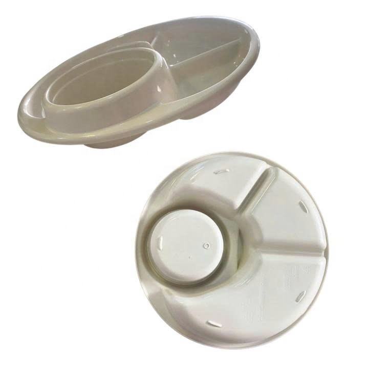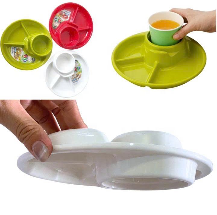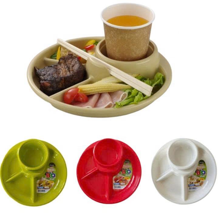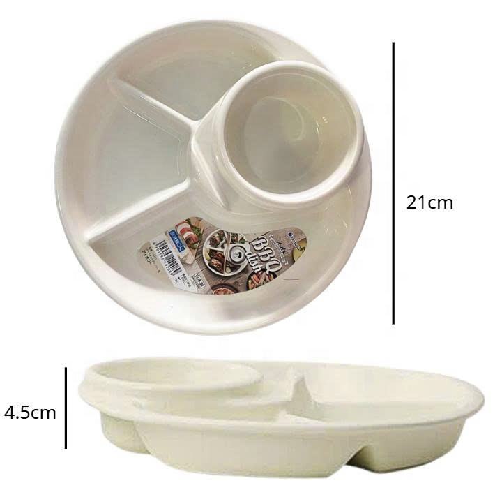 Plateau à collation rond en plastique OEM avec compartiment central pour sauce, idéal pour les apéritifs de barbecue et les collations de fête