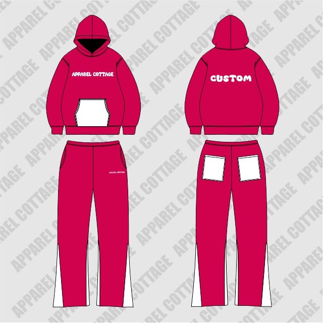 OEM Plus Size Couleur rose foncé Poches blanches Logos Pantalon évasé Sweat à capuche Confort Respirant 100% Coton Survêtement Ensembles Hommes