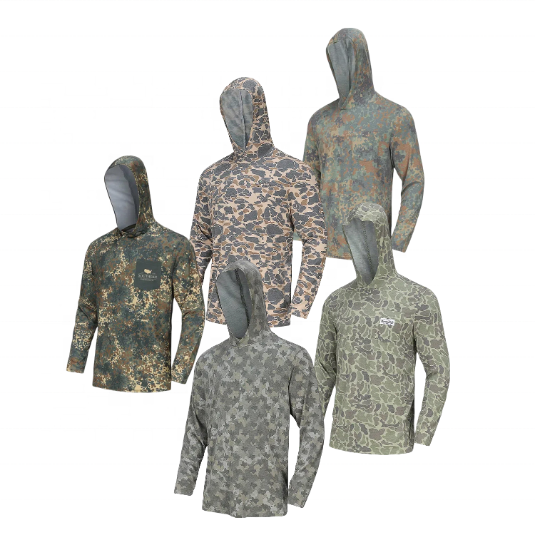 T-shirt camouflage désertique en polyester à séchage rapide OEM, T-shirt de pêche camouflage, T-shirt numérique camouflage de chasse à manches longues