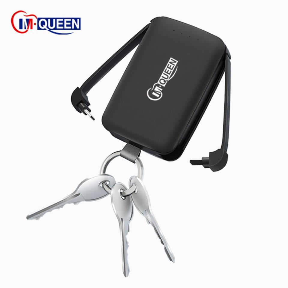Batterie externe portable OEM mini 2000mAh 4000mAh avec câble intégré, format porte-clés, pour recharge de téléphone, petite et pratique