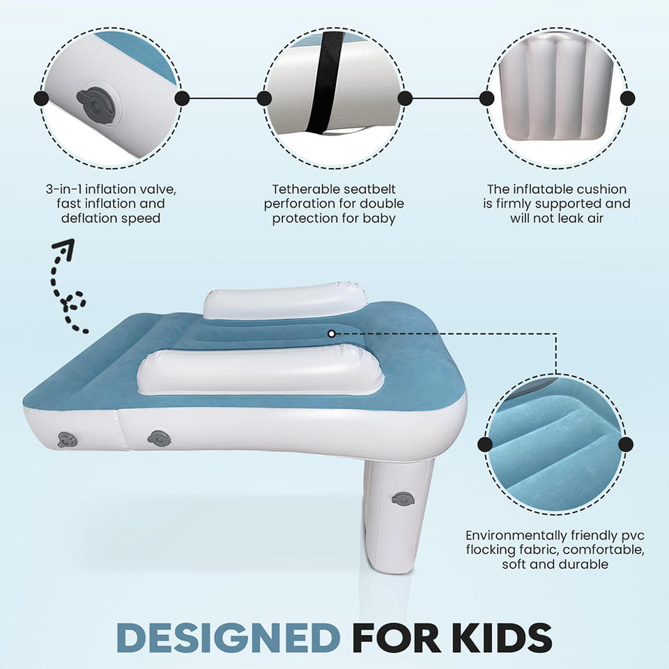 Lit d'avion gonflable portable en PVC OEM pour tout-petits et enfants, siège de voiture extensible, matelas pneumatique pour bébé, compagnon de voyage