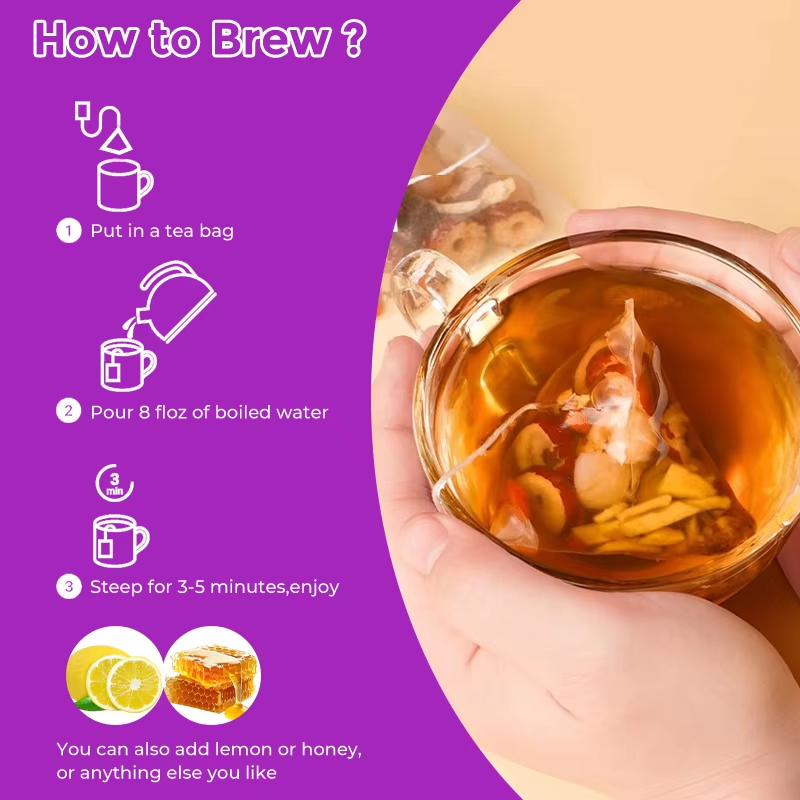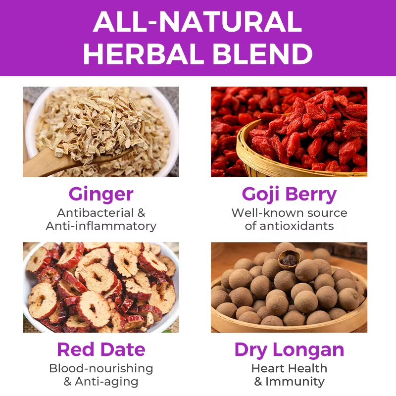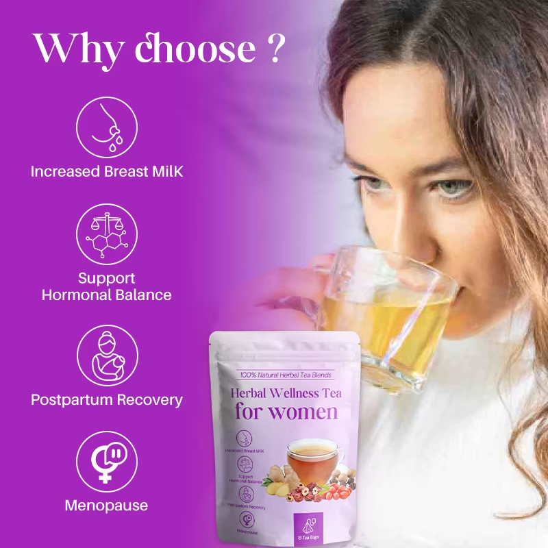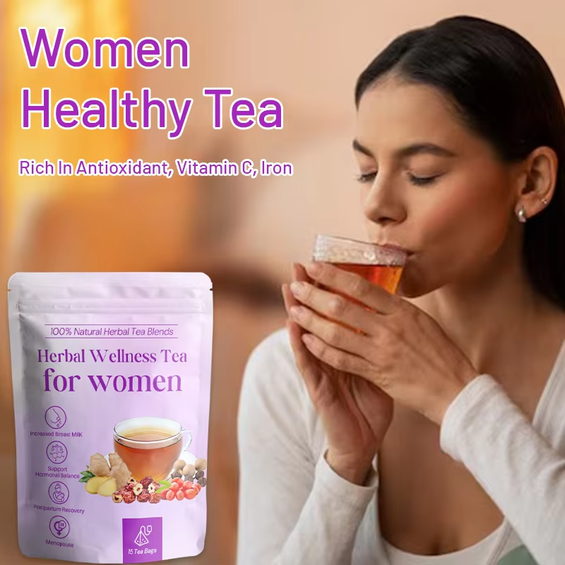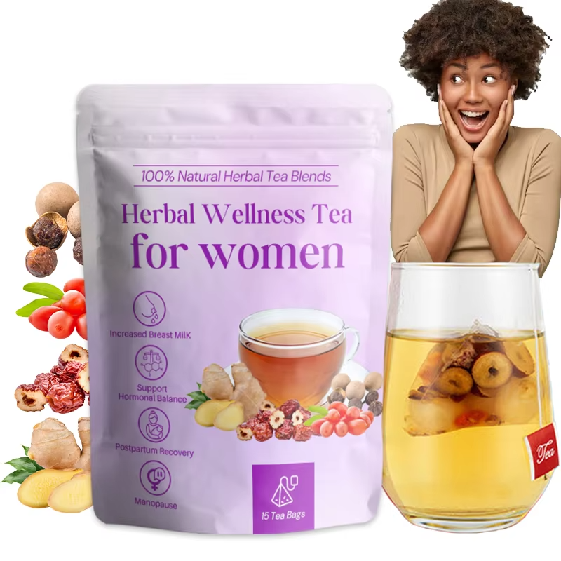 Thé de Récupération Post-partum Bio OEM pour Femmes – Mélange de Dattes Rouges, Goji, Gingembre et Longane – Soutien Hormonal et Lactation – 15 Sachets de Thé