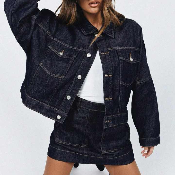 Ensemble jupe et veste boutonnée en coton mélangé de qualité supérieure OEM pour femme, nouvelle collection, ensemble deux pièces surdimensionné pour femme