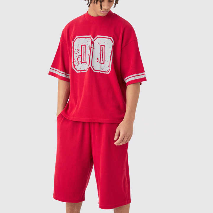 Ensembles coupe-vent imprimés OEM, t-shirt et short pour homme 100% coton, ensemble de survêtement court en deux pièces, personnalisé