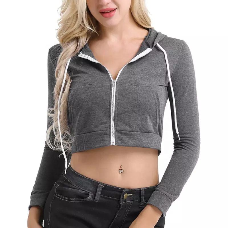 OEM Impression Plaine Sexy Dames Crop Top À Manches Longues Pull Hoodies Fitness Crop Top Femmes À Capuche