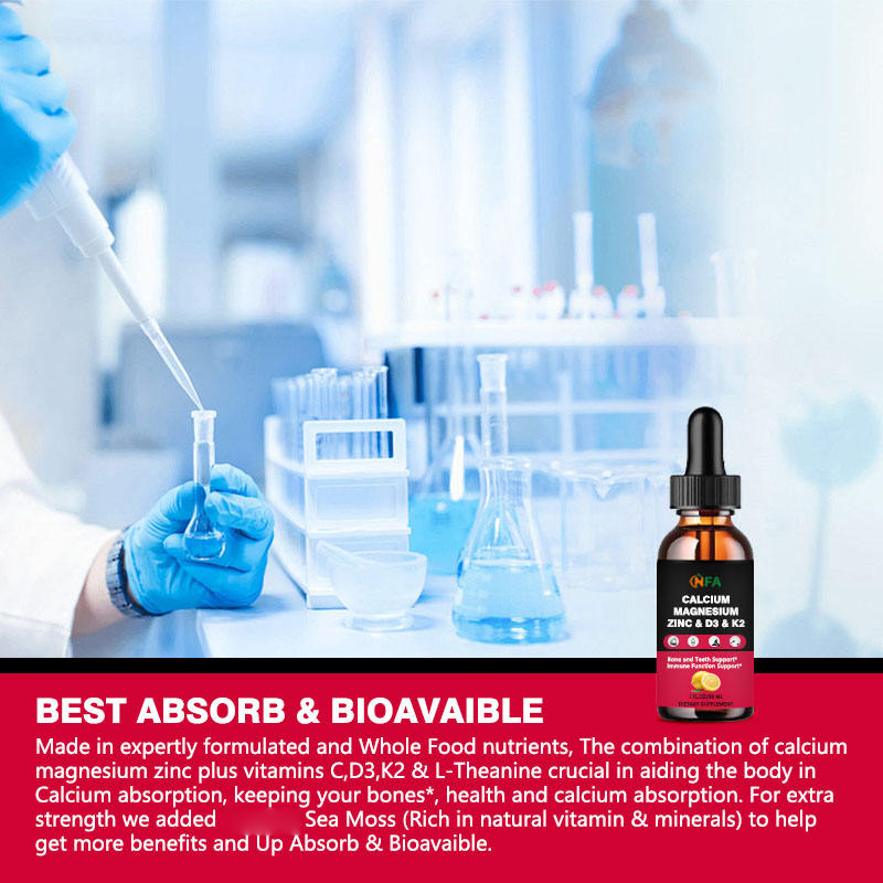 Gouttes liquides de calcium, magnésium et zinc de marque privée OEM avec vitamine D2 et D3 pour des dents saines améliorant la fonction immunitaire