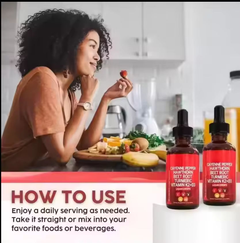 Huile de supplément sauvage à marque privée OEM avec extrait de piment de Cayenne, d'aubépine, de racine de betterave, de curcuma, de vitamine K2 et D3, livraison rapide, bon prix