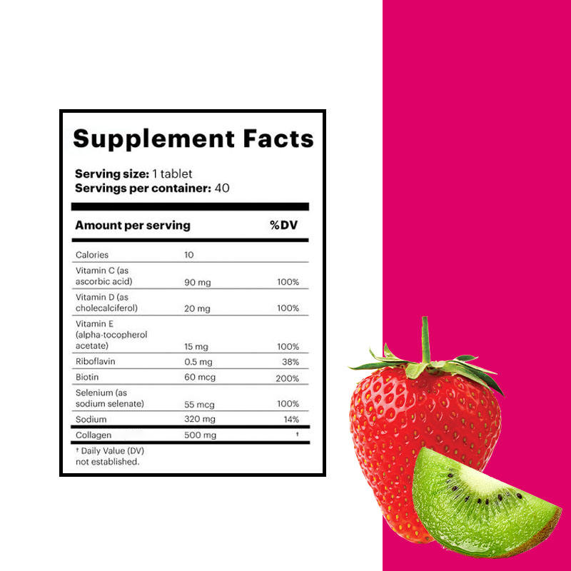 Comprimés effervescents de collagène de marque de distributeur OEM avec soutien à la saveur fraise kiwi peau lisse favorisant la croissance des cheveux sains