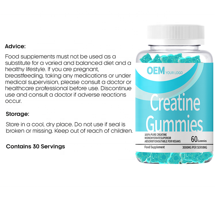 Gummies de créatine monohydrate 5000mg à marque privée OEM – Compléments énergétiques pré-entraînement pour la croissance musculaire et la nutrition sportive