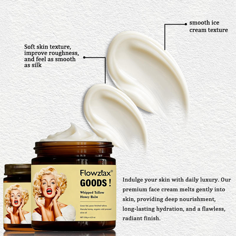 Crème Essentielle Visage Flowziax OEM Marque Privée avec Baume Fouetté au Suif et au Miel pour Hydrater et Éclaircir la Peau du Visage