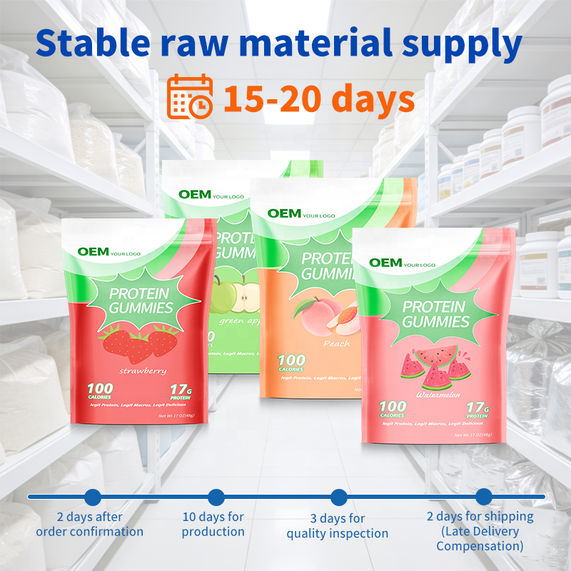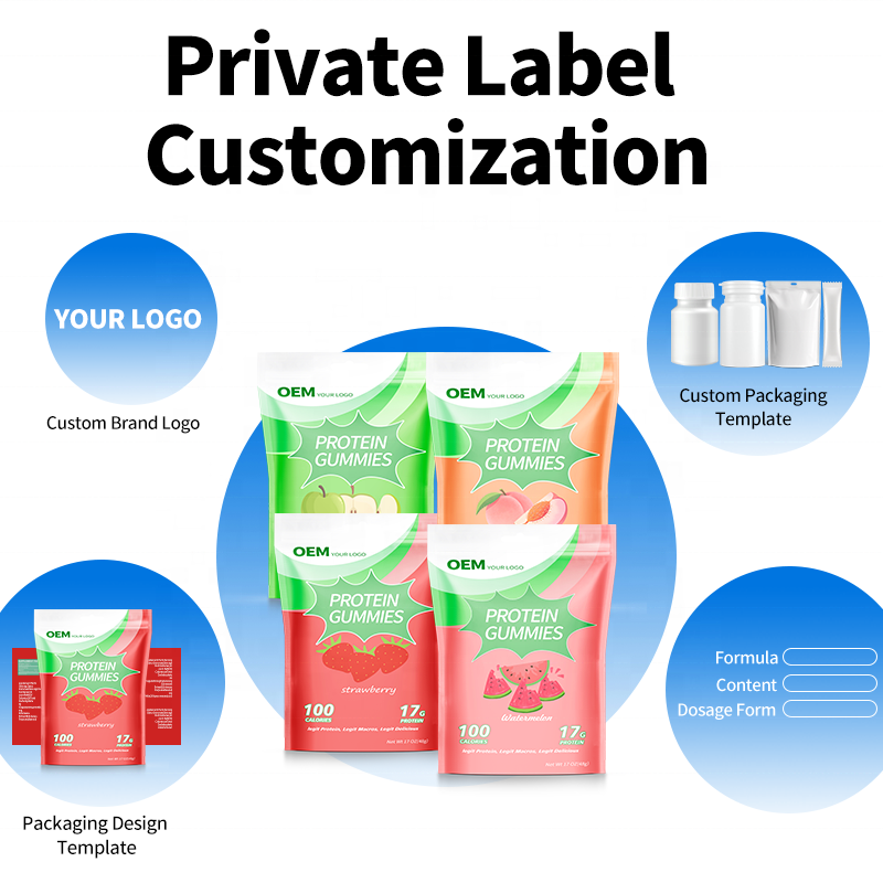 Gummies de protéines de lactosérum de haute qualité à marque privée OEM – Favorisent l'énergie et la croissance musculaire – Commande flexible pour le réapprovisionnement en stock